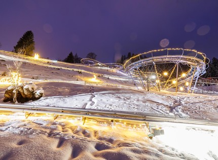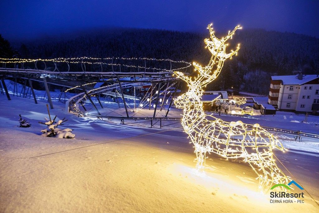 Od prosince do března se bobová dráha mění v kouzelnou zimní krajinu. Užít si tu můžete magickou jízdu. Tisíce světýlek ozařují celou trasu a v areálu najdete 2D a 3D instalace krkonošských zvířat a pohádkových postav v nadživotní velikosti. Kouzelnou atmosféru si nejlépe užijete poté, co se v areálu trochu sešeří. Nezapomeňte se vyfotit ve fotopointu a odvezte si z Pece krásnou památku!