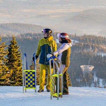 Hlavní půjčovnu saní SkiResort Live najdete v 1. patře budovy dolní stanice kabinkové lanovky v Janských Lázní.