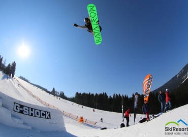 Die schnellste Verbindung der Areale Černá hora und Pec: mit der Pistenraupe und auf den Skiern.