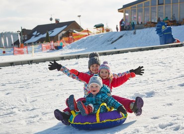 Schneerutsch für die Fahrt auf dem Snowtubing Reifen.