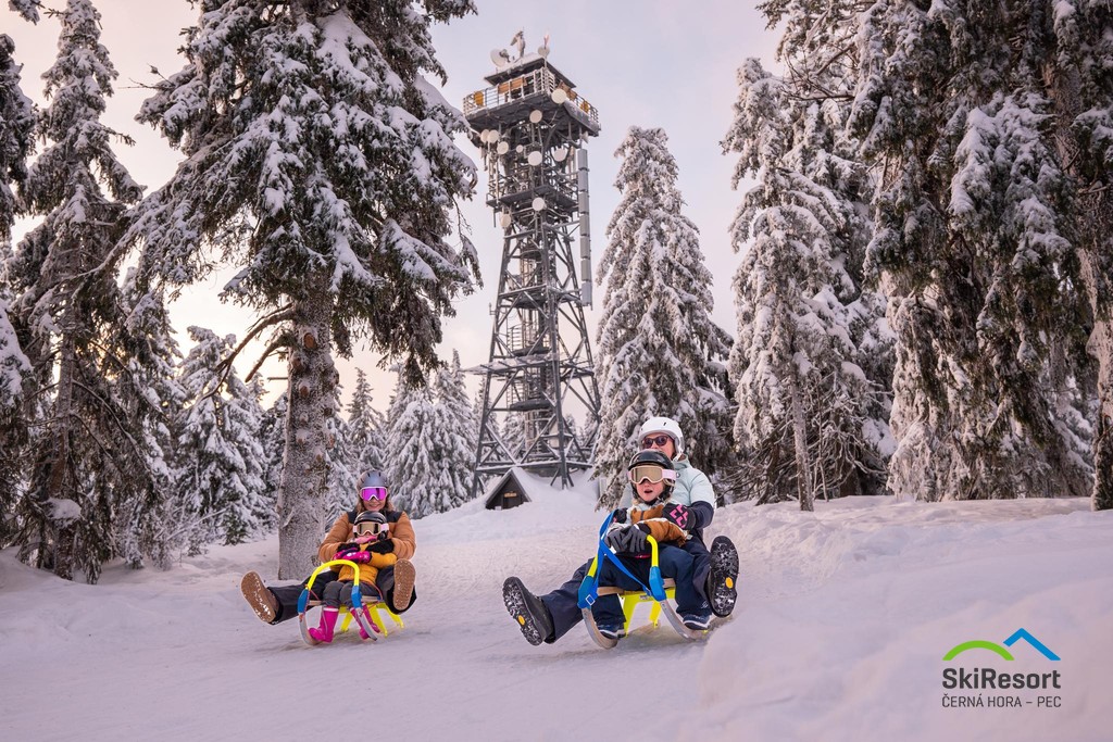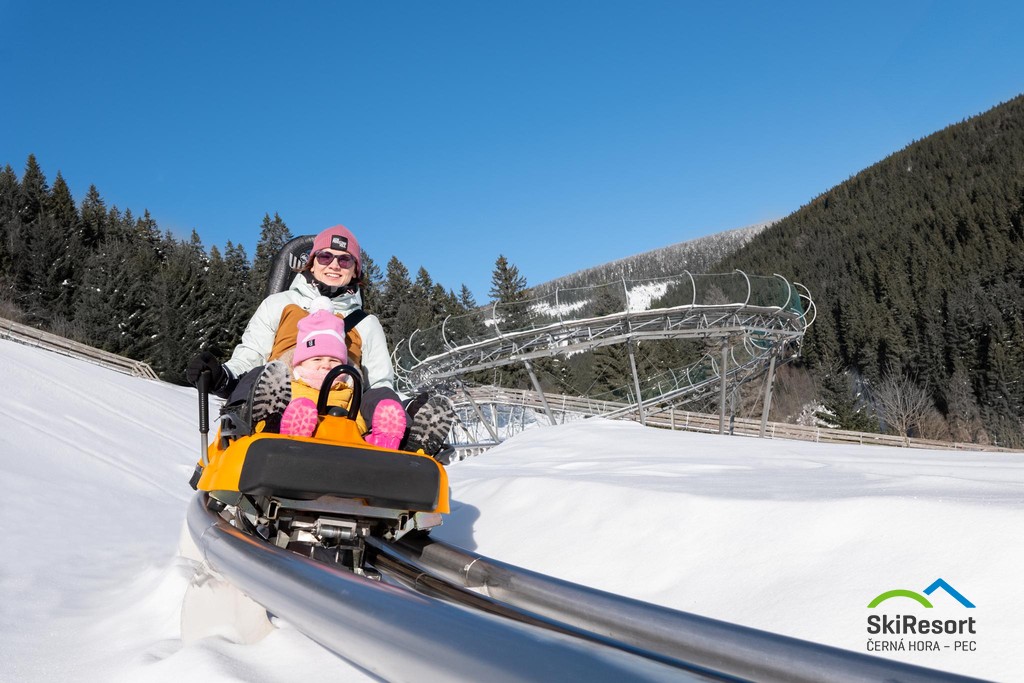 Für kleinere Kinder eignet sich das Rodeln und Bobfahren im Panorama Park auf der Černá hora noch besser. Zum Start der Rodelpiste gelangen sie bequem mit dem Förderband. Der Verleih von Schlitten und Bobs ist direkt auf der Černá hora kostenlos.