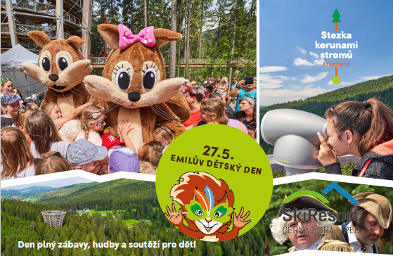 Přijďte si užít Dětský den do Janských Lázní a vláčkem přejeďte i ke Stezce korunami stromů. Čeká vás den plný zábavy, hudby a soutěží pro děti. Více informací o programu zde.