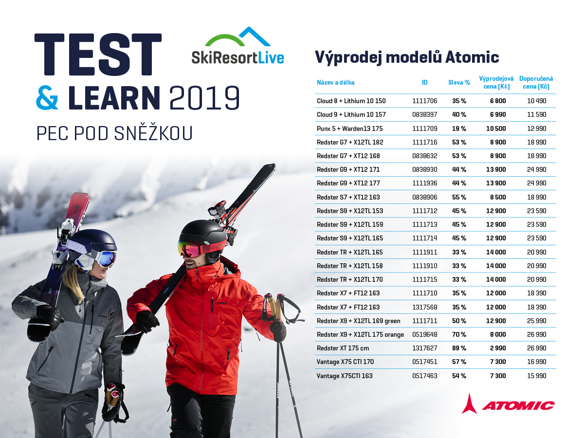 Projeďte se na lyžích, na kterých závodí Ester Ledecká, Marcel Hirscher nebo Benjamin Raich. Vyzkoušejte si na vlastní kůži, zda vám víc vyhovují slalomky, obřačky nebo all mountain lyže. Ve SkiResort Live si je můžete během testovacích dní koupit za lepší než internetové ceny.