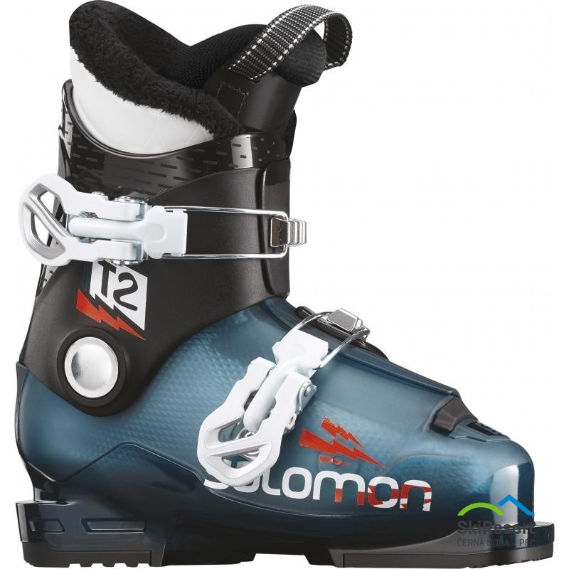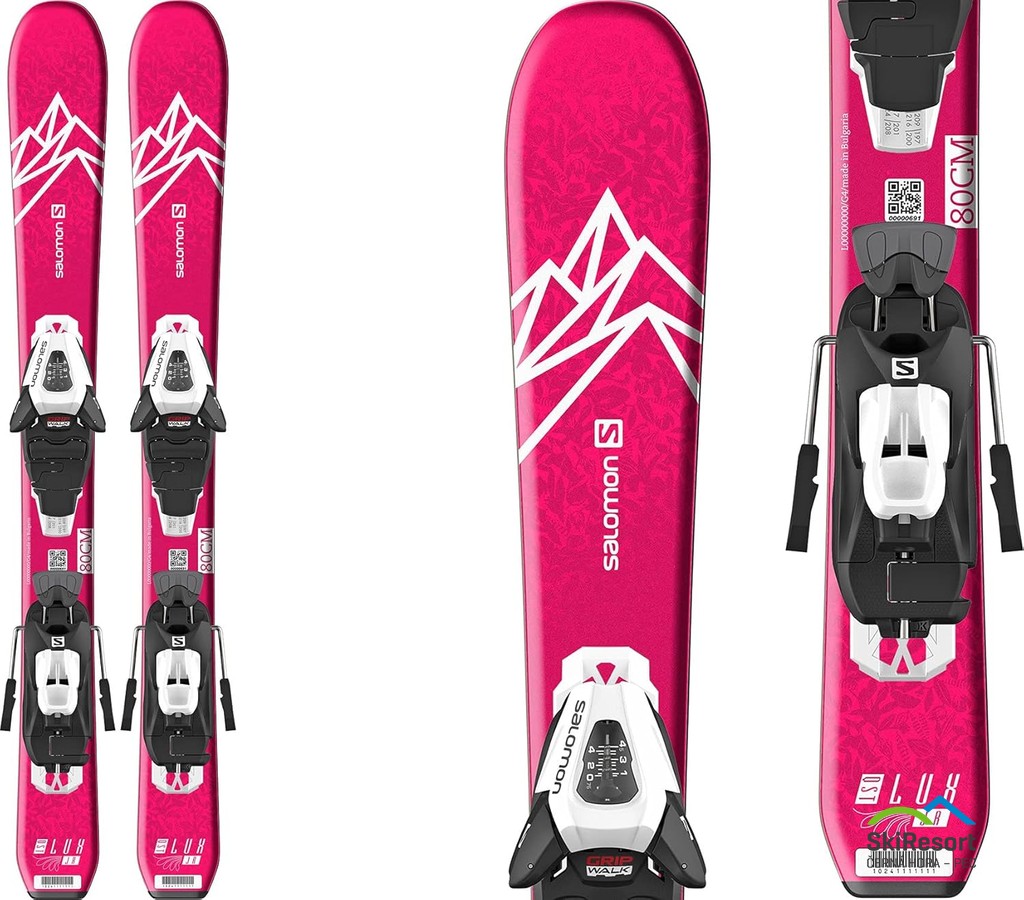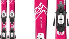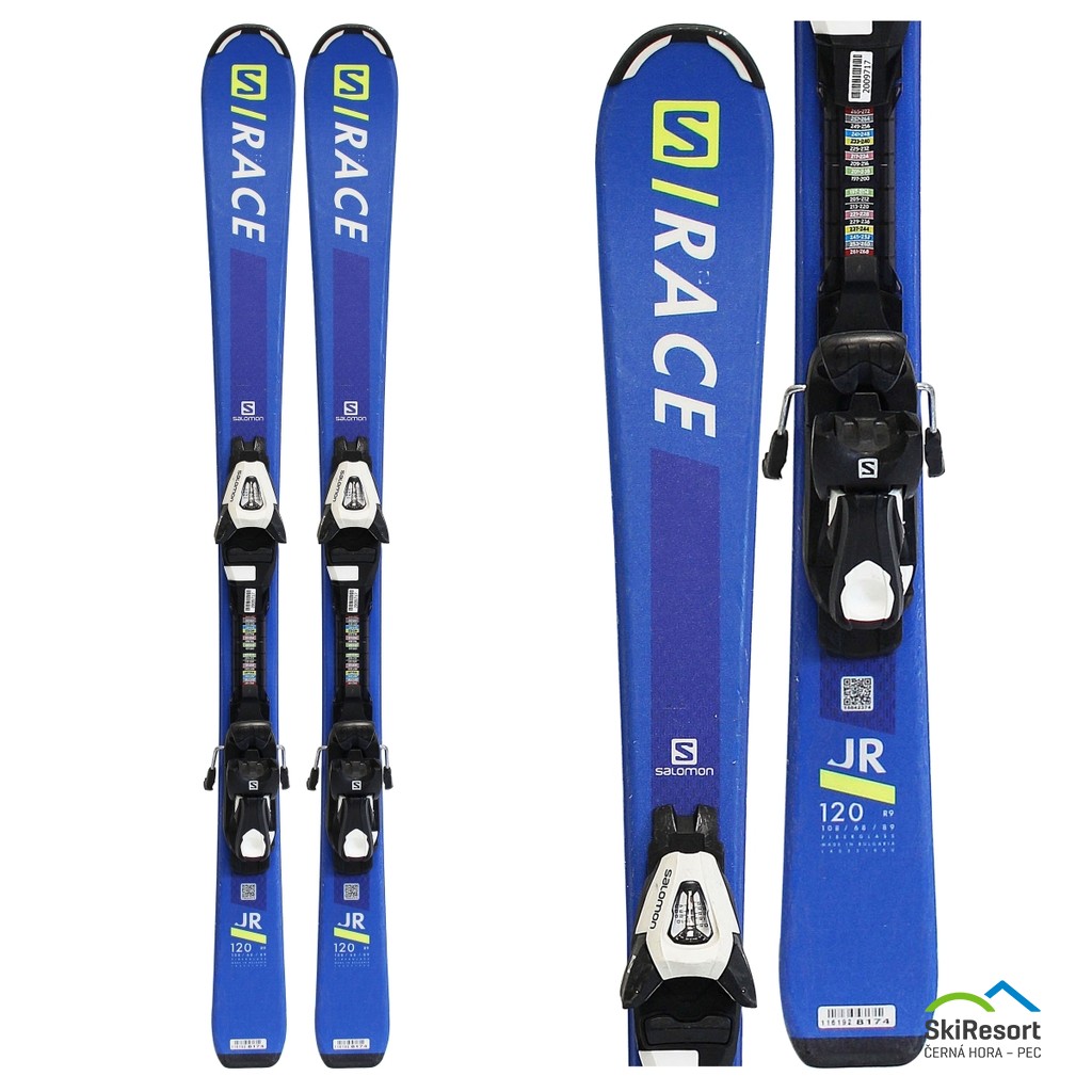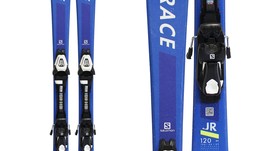 Součástí dětského setu jsou lyže, hůlky a boty značky Salomon (QST Lux JR, S/Race JR, T2 RT).