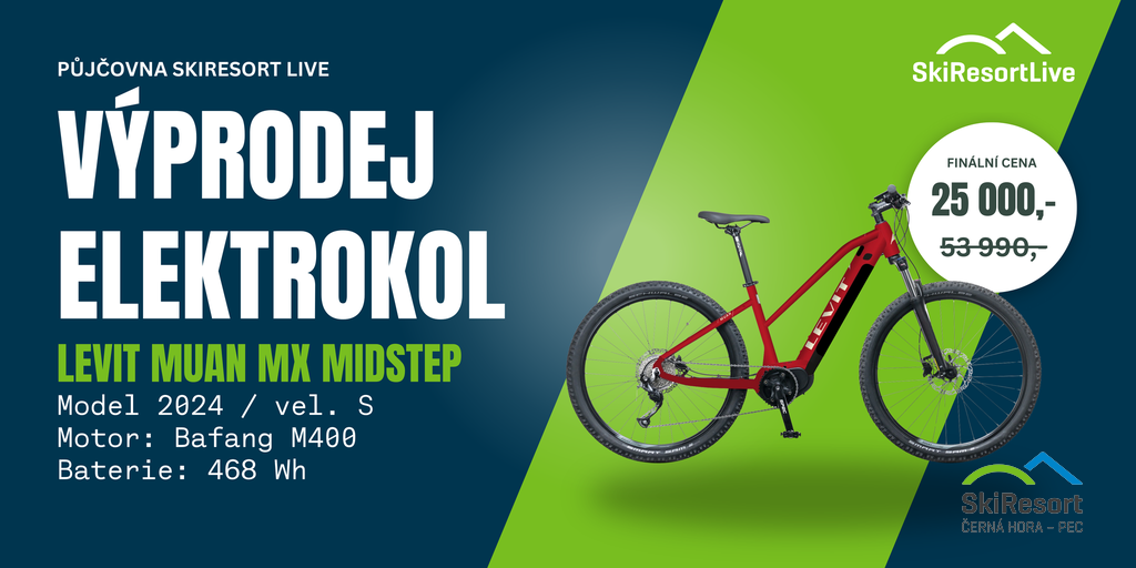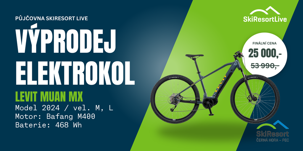 SkiResort Live spustil výprodej svých elektrokol z půjčovny. Každé kolo je pečlivě servisované a připravené na spoustu dalších zážitků. Teď je pořídíte se slevou víc než 50% – ideální šance, jak si prodloužit cyklistickou sezónu.