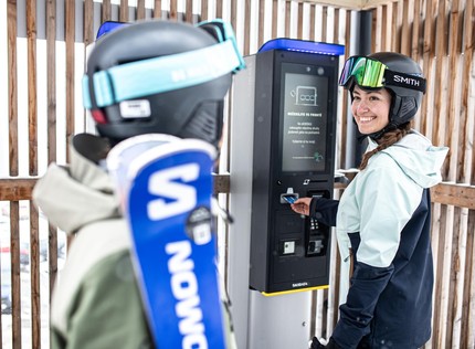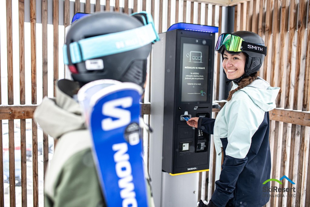 sKiosky funguji jako výdejní automaty a samoobslužná pokladna v jednom. V zimě si tu vyzvednete skipas koupený online, nebo si zde můžete skipas přímo koupit. sKiosky jsou v provozu 24/7. Ve sKiosku zaplatíte pouze platební kartou.