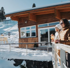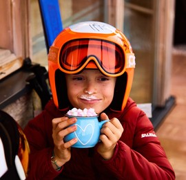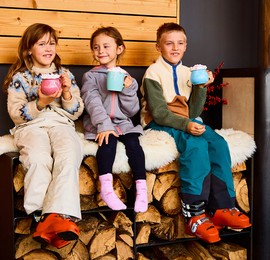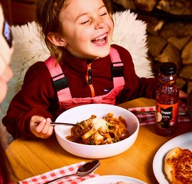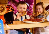 Do dyspozycji gości oferujemy kącik dla dzieci, przewijak, kuchenkę mikrofalową do podgrzewania przekąsek i dziecięce krzesło do jedzenia. Z karty dań polecamy SkiResort Burger z frytkami, knedliki z jagodami lub pożywne zupy. Do posiłków dla dzieci dodajemy bezpłatny Cappy Juice.