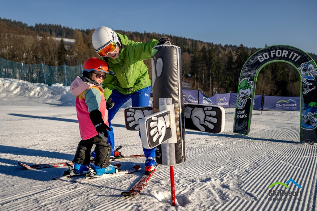 - výukový LIVE PARK s atraktivními výukovými prvky, kde učí SkiResort Live